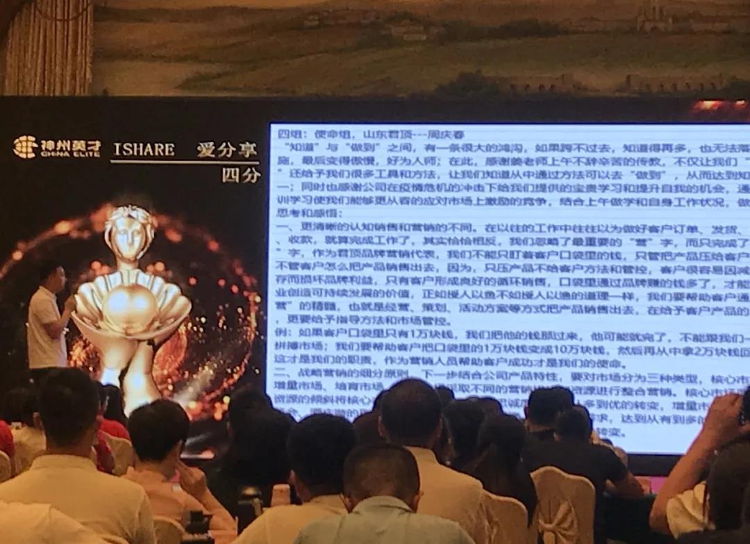 神州英才集團總裁姜桐老師,授課過程中講解內(nèi)容詳實貼近市場,案例分享妙趣橫生,現(xiàn)場高潮迭起。姜老師提出,營銷應該激發(fā)企業(yè)的整體營銷活力,充分挖掘企業(yè)現(xiàn)有客戶資源提高利用效率,然后通過賦能批量復制優(yōu)秀的銷售人才,通過SOP建設(shè)實現(xiàn)營銷系統(tǒng)的標準化、流程化,以此助力企業(yè)實現(xiàn)持續(xù)倍增業(yè)績的核心目標……課程干貨滿滿,內(nèi)容上既系統(tǒng)有高度又注重落地實效,現(xiàn)場學員一致好評。