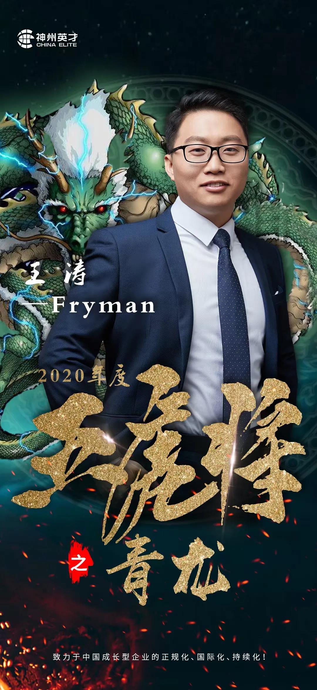 2020神州英才五虎將得主為麒麟Manson胡凡軍,青龍Fryman王濤,白虎Icey郭林燕,朱雀Nina尚祖云,玄武Sugar孫甜甜。