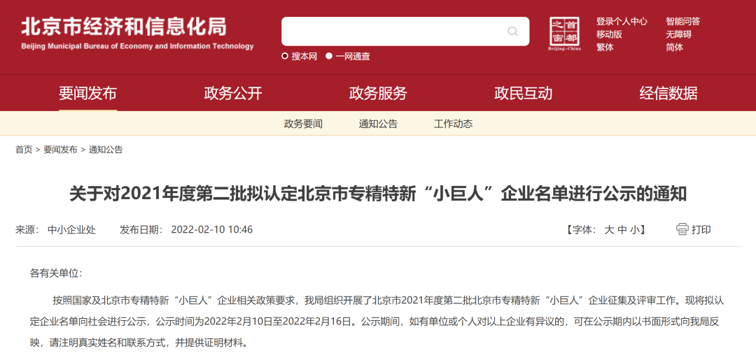 近日,北京市經(jīng)濟(jì)和信息化局網(wǎng)站公布了2021年度第二批擬認(rèn)定北京市專精特新“小巨人”企業(yè)名單,神州英才OS會員—北京中嘉和信通信技術(shù)有限公司,憑借卓越的技術(shù)創(chuàng)新能力與優(yōu)異的市場表現(xiàn)成功入選。